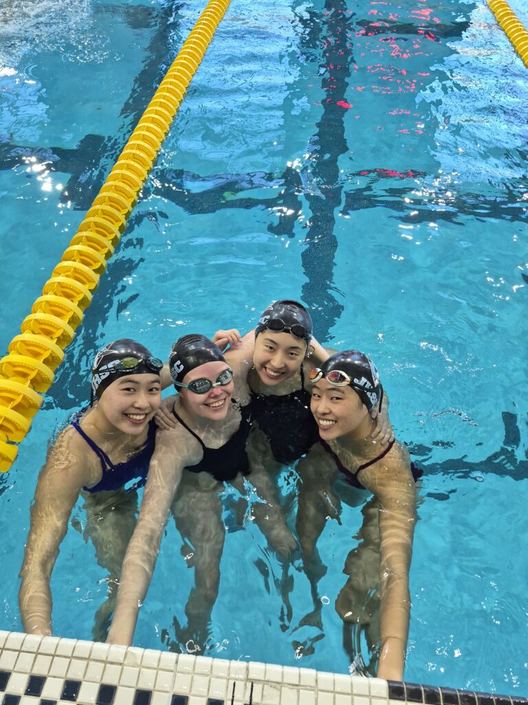 As someone who enjoys competition, meet days are absolutely a highlight of the season for me. I love the thrill of diving into a pool and competing against swimmers from other colleges in the DMV (DC, Maryland, and Virginia) area. This year, we traveled to University of Maryland, American University, and Rutgers University, which are all within a two-hour drive. What makes meet days even more fun for me is that we always start the day with a team breakfast at THB, a local Baltimore bagel shop, before piling into cars to travel to a different university. For our Rutgers meet this year, we decided to take a road trip to New Jersey. Somehow, we made the three-hour trip twice in one day and raced super well as a team too!